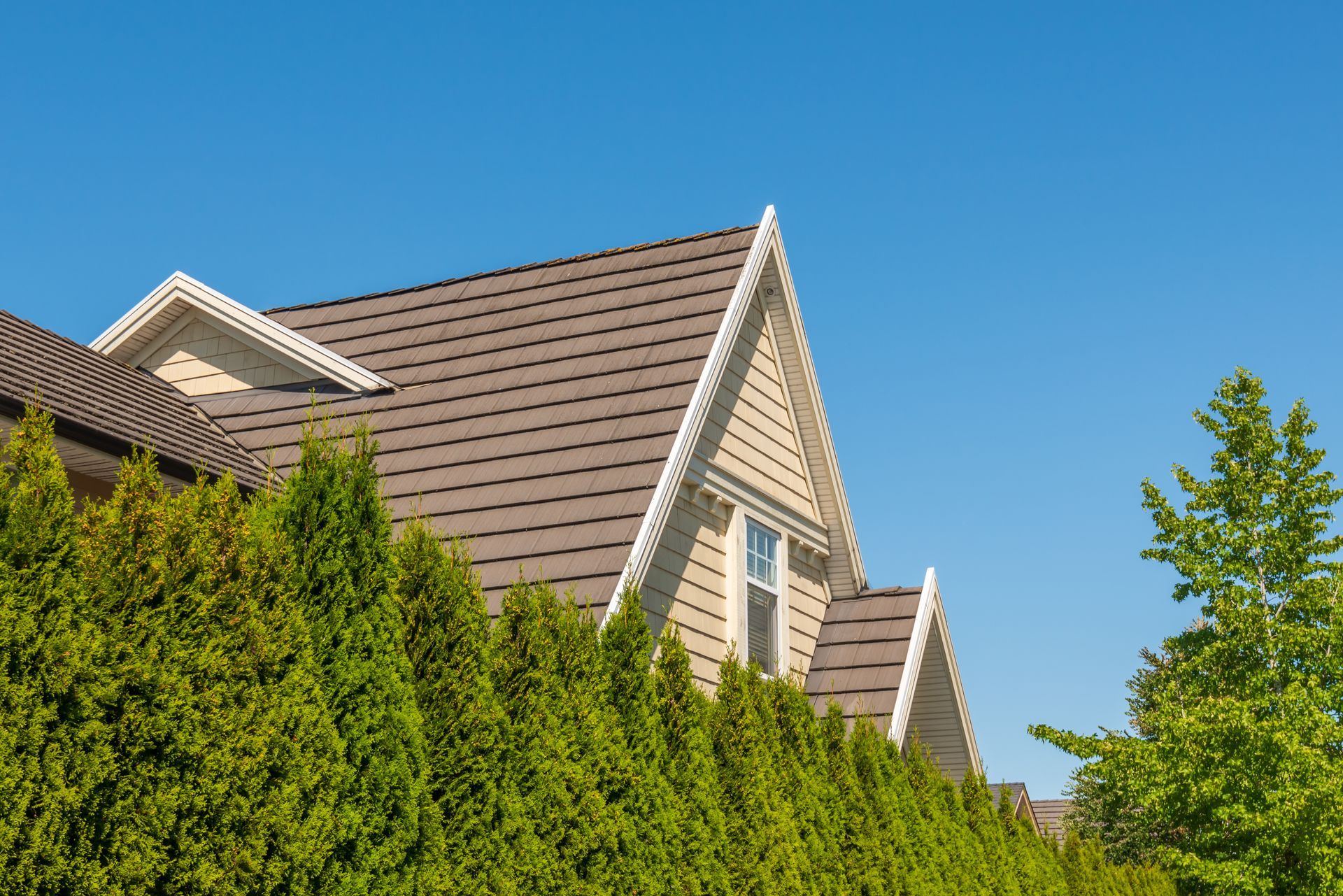 Perfectly suited for properties with roof pitches of 3:12 or greater, our steep-slope roofing blends architectural elegance with superior water drainage capabilities. We utilize premium materials, including asphalt shingles, clay or concrete tiles, and natural slate, to deliver striking visuals, outstanding structural integrity, and lower maintenance expenses.